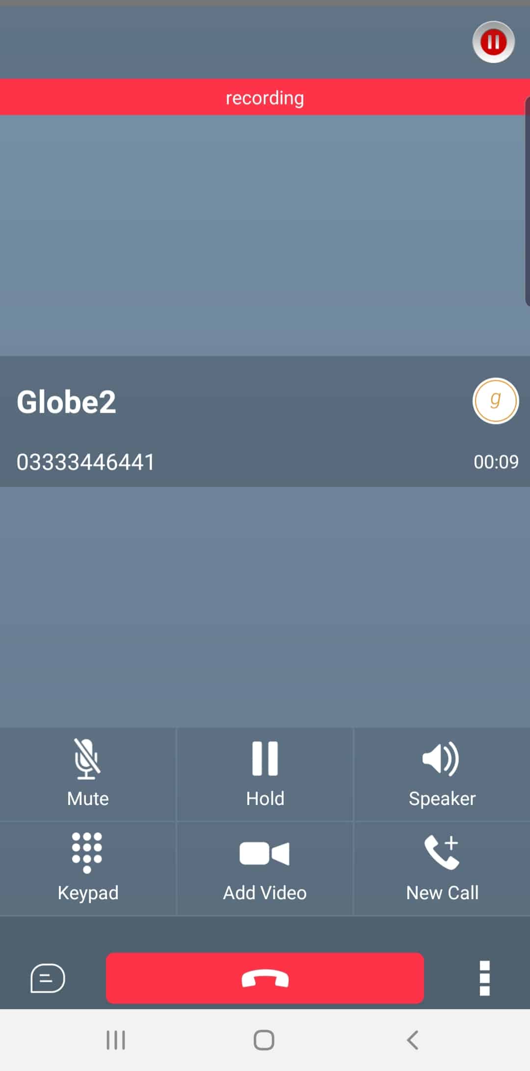 - During a call in the upper right hand corner you will see a pause button (image below). Simply click this to pause the recording.